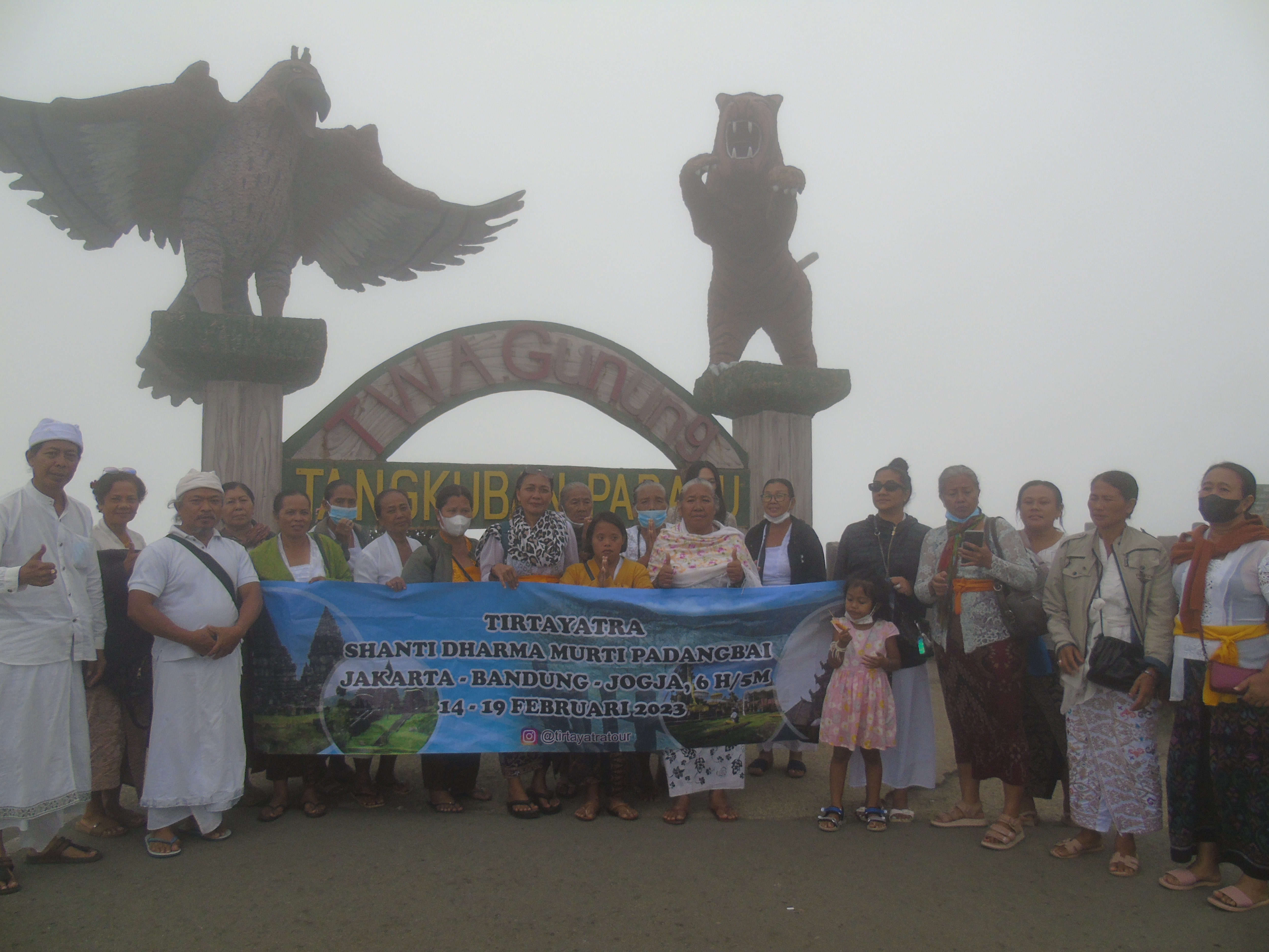 Pagi hari tiba di daerah Tegal, transit MCK & sarapan pagi di lokal rumah makan – siang hari tiba di Pr.Aditya Jaya Rawamangun & makan siang di area pura – Sore hari tiba di Pr.Agung Jagatkarta Gn.Salak, mekemit & makan malam di area pura